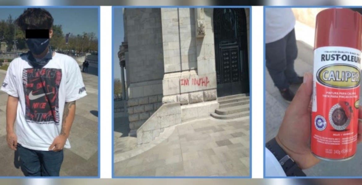 Un guardia de seguridad del palacio avisó a elementos de la PA y el joven marroquí fue detenido todavía con una lata de aerosol.