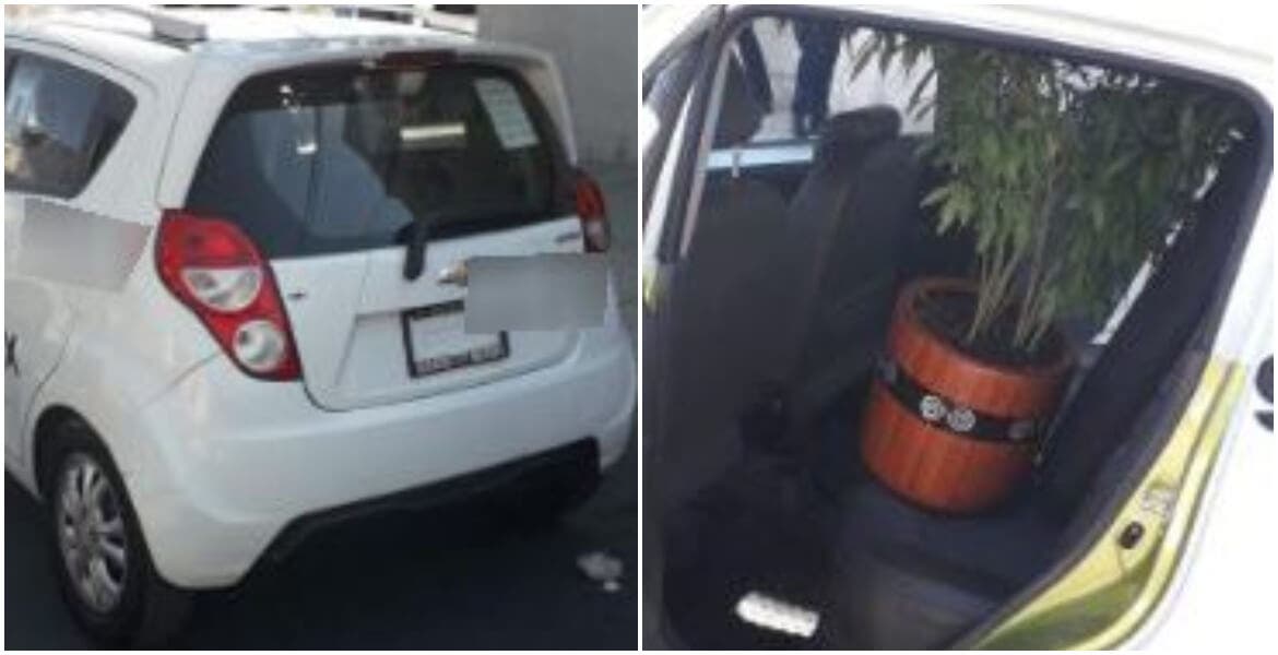 Los policías pidieron al conductor que se detuviera y tras una revisión preventiva, encontraron la planta con las características de la mariguana, en una maceta de tamaño mediano, en el asiento trasero de la unidad junto a la pareja.