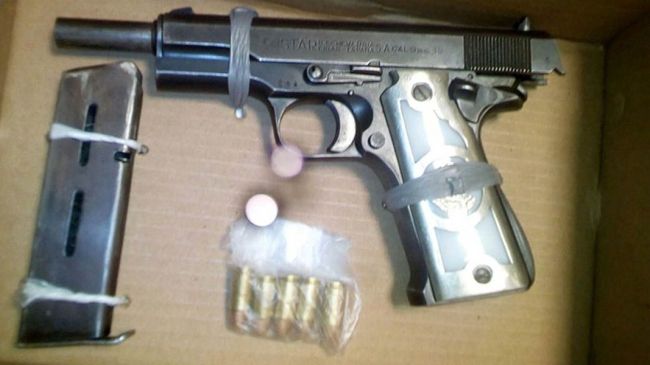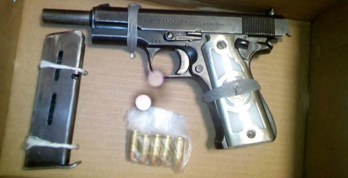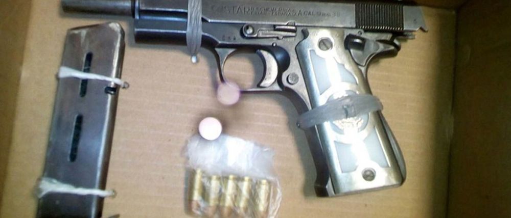 De acuerdo al parte informativo, al efectuarle una revisión preventiva se encontró un arma de fuego, tipo escuadra, calibre 9 milímetros y cinco cartuchos útiles, así como una cartera con mil 100 pesos en efectivo y diferentes credenciales.