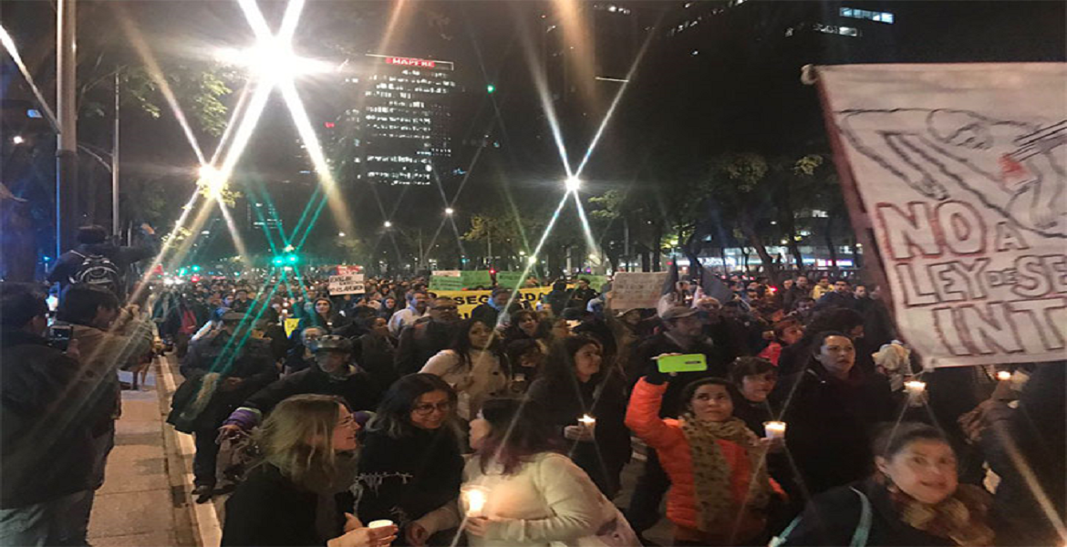 Cerca de las 19:00 horas, los inconformes se dieron cita en las escalinatas del Ángel de la Independencia para realizar una protesta pacífica rumbo al Senado para exigirle a las autoridades que no aprobaran esta ley.