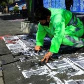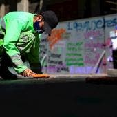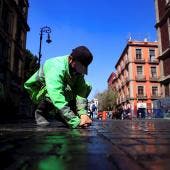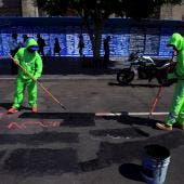 Tres camiones de limpieza y cerca de 30 trabajadores estuvieron limpiando este lunes los centenares de mensajes pintados en el Zócalo capitalino, la céntrica plaza de la capital donde se ubica el Palacio Nacional y que fue punto neurálgico de la protesta,