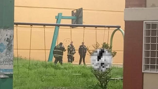 De acuerdo con los primeros reportes, la persona se encontraba con una soga atada al cuello, la cual estaba sujeta al travesaño de unos columpios.