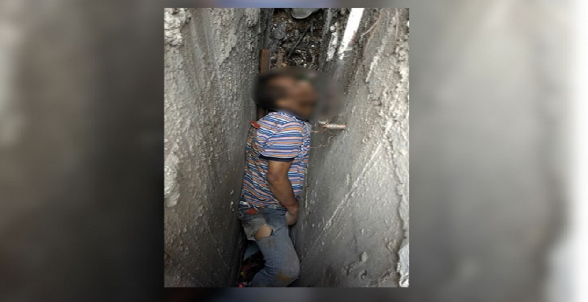 Encuentran entre dos paredes a hombre sin vida