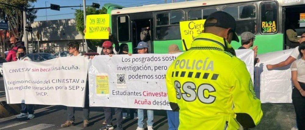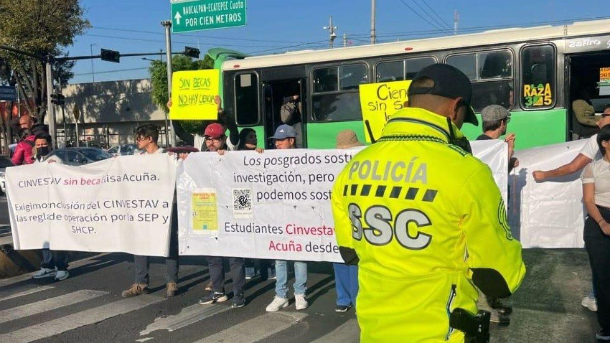 Un grupo de estudiantes del Centro de Investigación y de Estudios Avanzados (Cinvestav) bloqueó esta mañana el cruce de las avenidas Montevideo e Instituto Politécnico Nacional, en la colonia Lindavista, alcaldía Gustavo A. Madero.