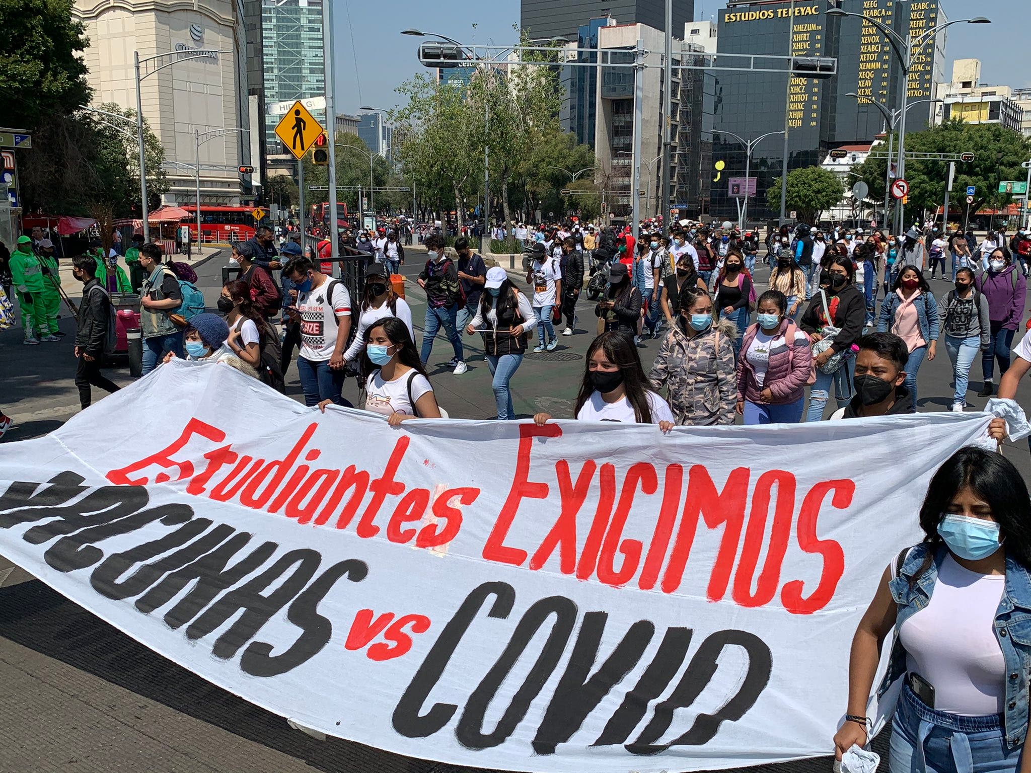 Estudiantes se manifiestan en la capital: 'Sí al regreso a clases, pero vacunados'