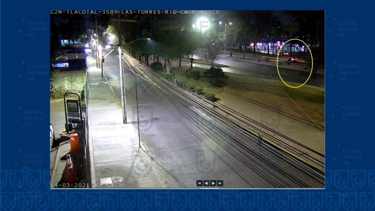 La cámara instalada en Circuito Interior y calle Jesús Galindo y Villa registró el paso del vehículo, también a alta velocidad; la misma situación fue percibida por las cámaras instaladas en Circuito Interior y Eje 2 Sur; Circuito Interior y Atletas; Circuito Interior y Eje 3 Sur, así como Las Torres y Río Churubusco; todo esto, en un lapso de las 03:51 a las 03:55 horas.