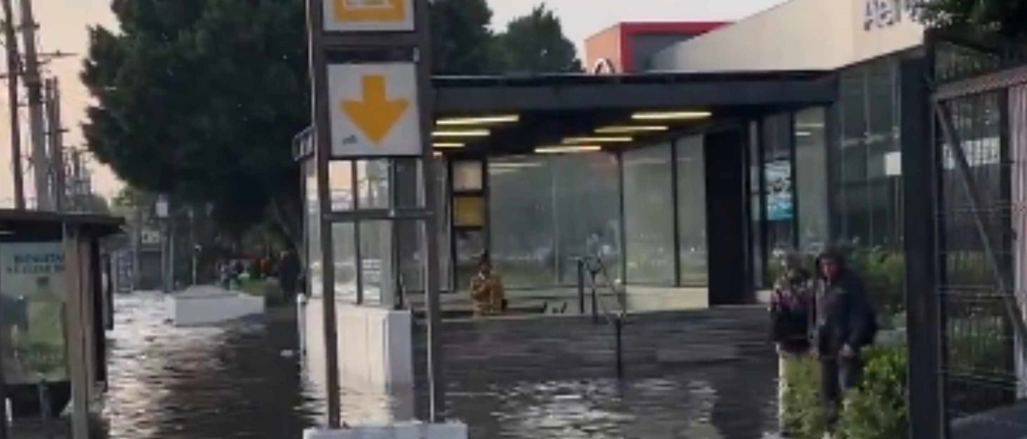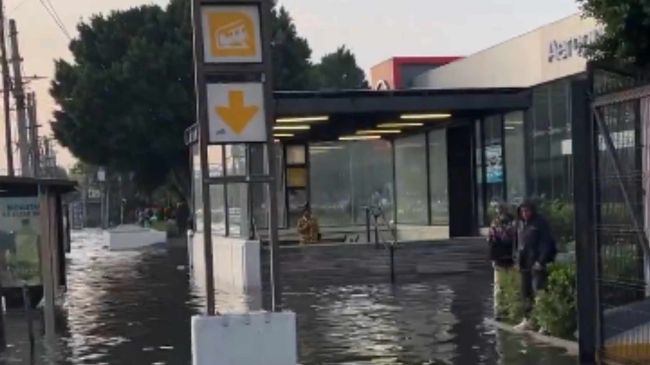 De acuerdo con reportes preliminares, el encharcamiento fuera de la estación, es de aproximadamente 80 metros de espejo con una altura de 25 y 30 centímetros de agua.