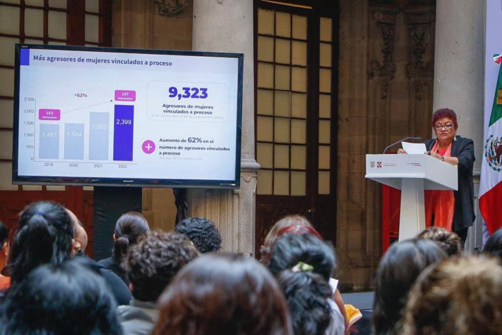 Godoy Ramos resaltó que aumentó en 28 por ciento el número de personas vinculadas a proceso por feminicidio, si se compara enero-septiembre de 2022 con el mismo periodo de 2020. Además,  se logró un incremento de 62 por ciento en el número de agresores vinculados a proceso, ya que se pasó de imputar un promedio de 165 agresores al mes en 2019 a 267 en 2022, por lo que del 1 de enero de 2019 al 30 de septiembre de 2022 se tienen a 9 mil 323 personas enfrentando un proceso legal.