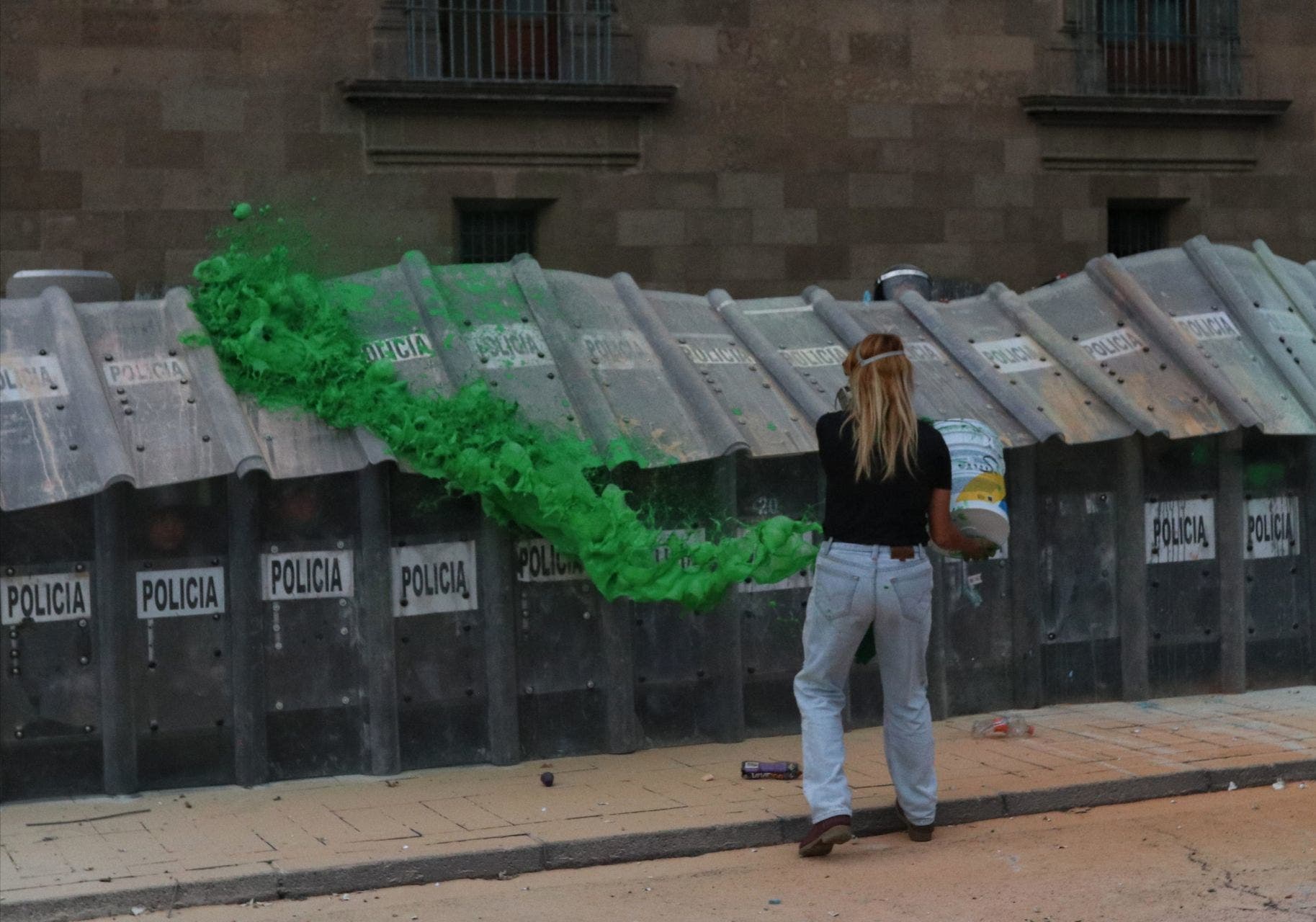 Se desplegaron mil 100 mujeres policías de la SSC, quienes dieron encauzamiento a la marcha para proteger la integridad de participantes y población en general; solo llevaban equipo de protección personal y en algunos momentos utilizaron extintores para sofocar incendios.