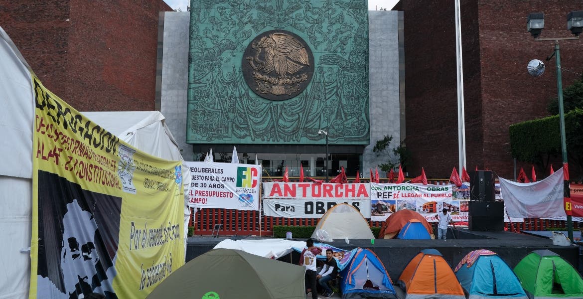 CIUDAD DE MÉXICO.- El Gobierno de la Ciudad de México dialoga con los campesinos que permanecen a las afueras de la Cámara de Diputados, a fin de evitar que su marcha prevista afecte al desfile por el 109 aniversario de la Revolución Mexicana.