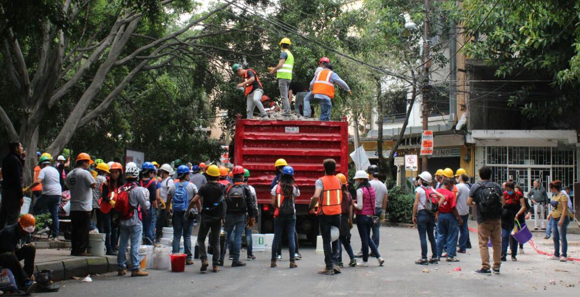 La colonia Hipódromo Condesa, una de las zonas más afectadas de la capital, se convirtió en centro de acopio y recolección de escombros. Diversas personas, principalmente jóvenes, llegaron al Parque México y sus alrededores con el objetivo de ayudar.