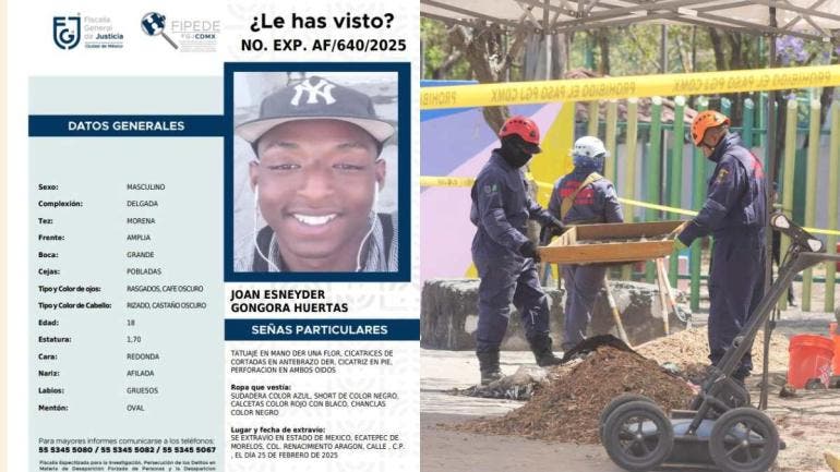 De acuerdo con la dependencia, el análisis forense determinó que los restos pertenecen a dos hombres. Uno de ellos presenta características coincidentes con las de Joan Esneyder Góngora Huertas, joven de origen colombiano reportado como desaparecido el pasado 25 de febrero en el municipio de Ecatepec, Estado de México.