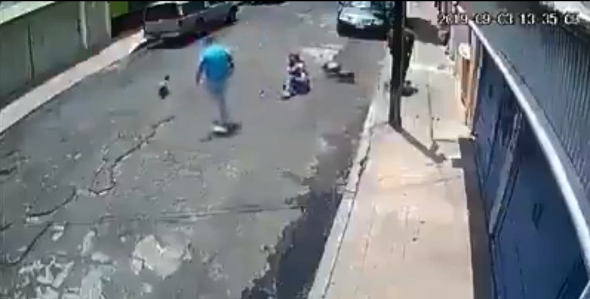 Ayer fue difundida una grabación donde se observa a un hombre de complexión robusta empujar fuertemente por detrás a una mujer que paseaba con cadena a sus perritos en calles de la colonia 5 de Mayo. Hecho que causó indignación en redes sociales.
