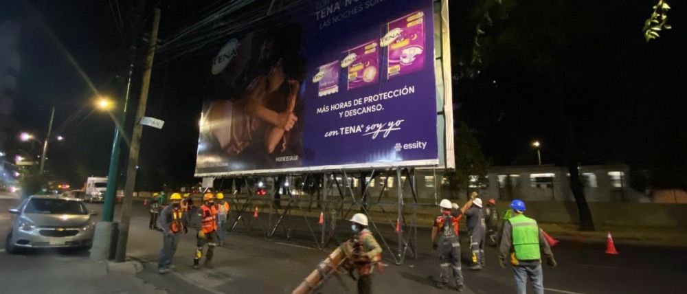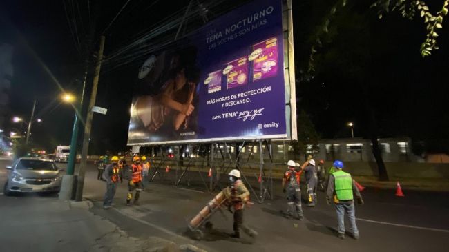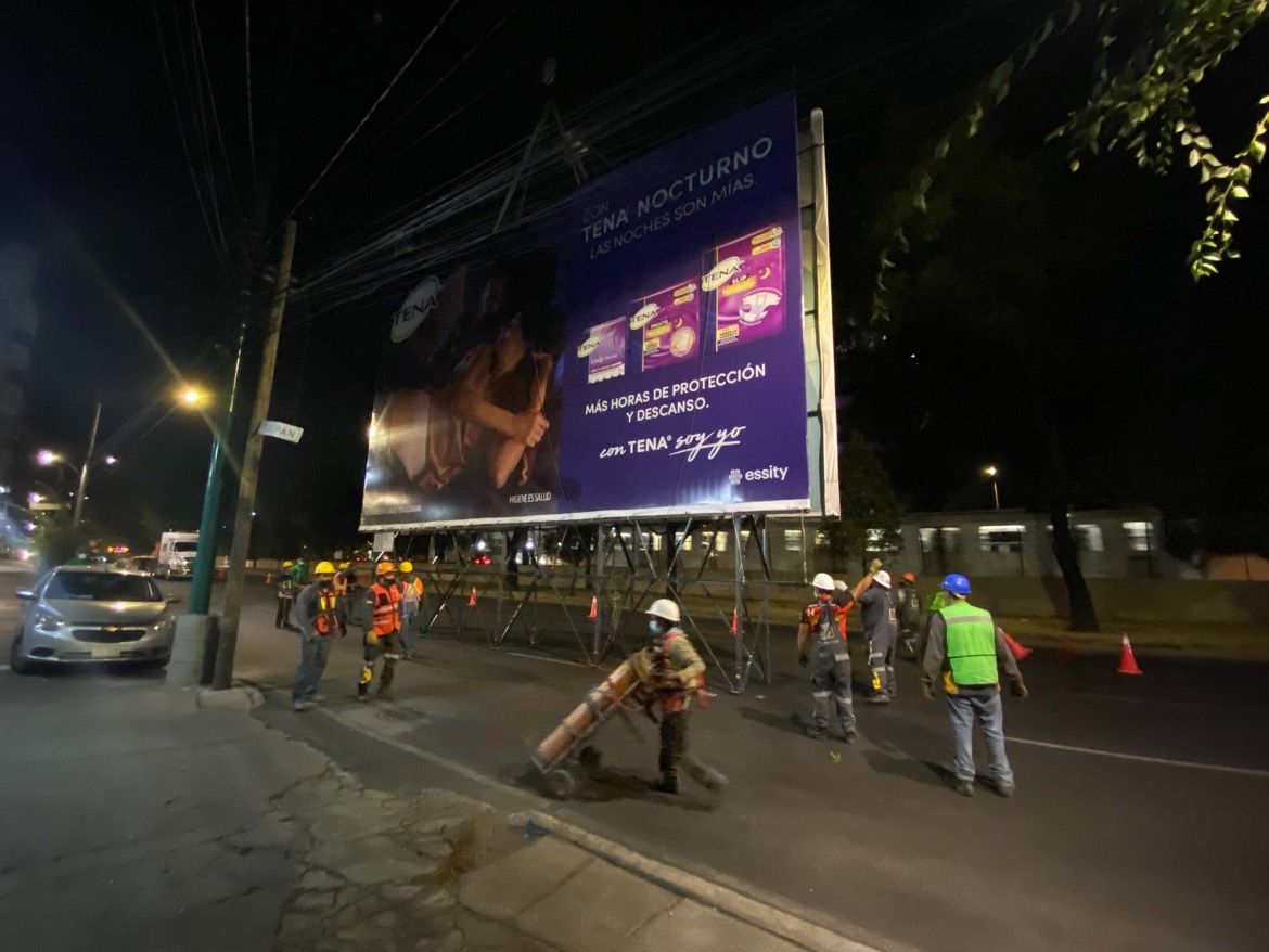 Para llevar a cabo la remoción de los espectaculares se emplearon dos grúas y cinco cuadrillas para realizar las labores de corte y remoción. Las maniobras iniciaron alrededor de las 22:00 horas y concluyeron la madrugada de este sábado.