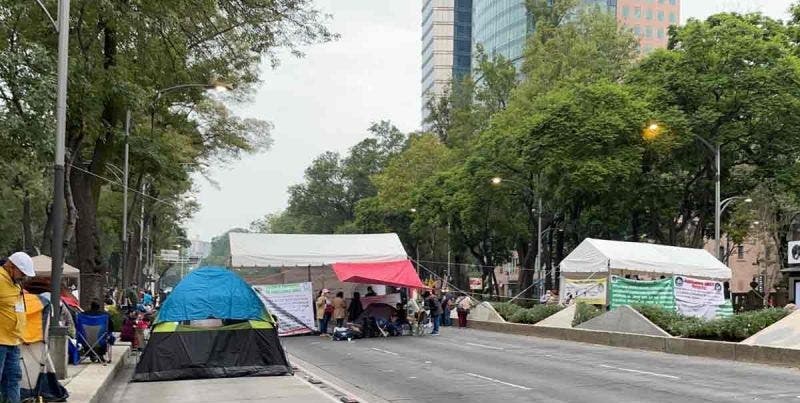 Jubilados del IMSS mantienen bloqueo en Paseo de la Reforma