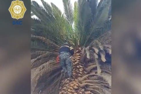 Liberan a un gatito que quedó atrapado en una palmera en Iztacalco