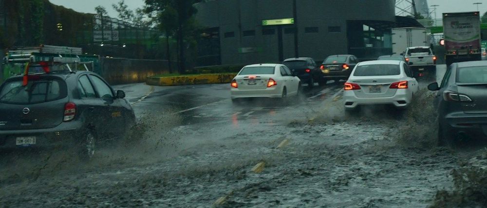 El municipio de Atizapán de Zaragoza fue uno de los más afectados, donde las lluvias inundaron las calles llegando a cubrir parcialmente algunos automóviles.