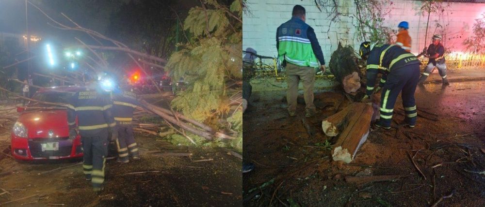 Tras los reportes, servicios de emergencia se trasladaron a distintos puntos de la ciudad para retirar árboles caídos y mitigar riesgos.
