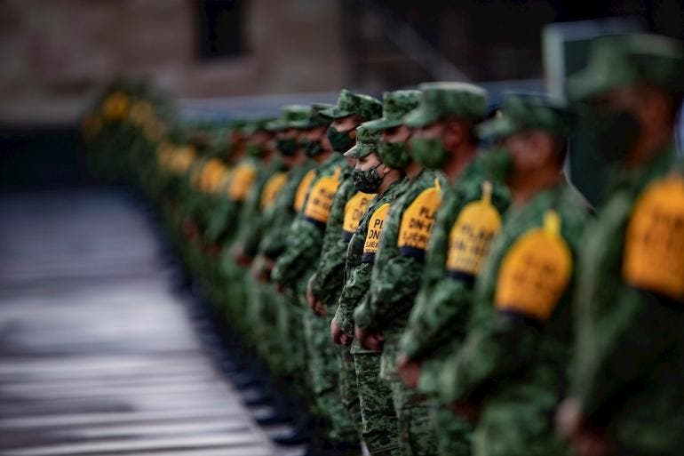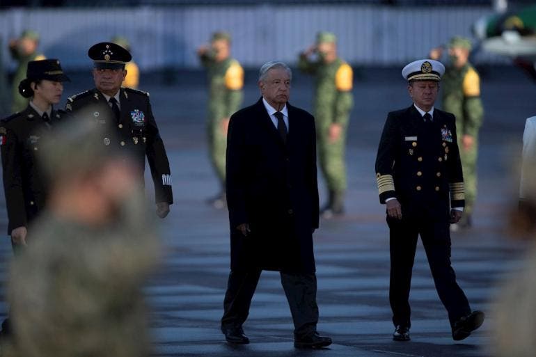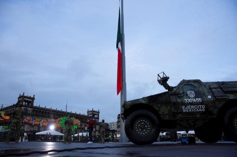 Rodeado de elementos del Ejército mexicano, Guardia Nacional, rescatistas, funcionarios de su gabinete, de la jefa de Gobierno de la Ciudad de México, Claudia Sheinbaum, y directores de Protección Civil y de la Cruz Roja Mexicana, el mandatario izó la bandera a media asta para honrar a las víctimas de ambos terremotos.