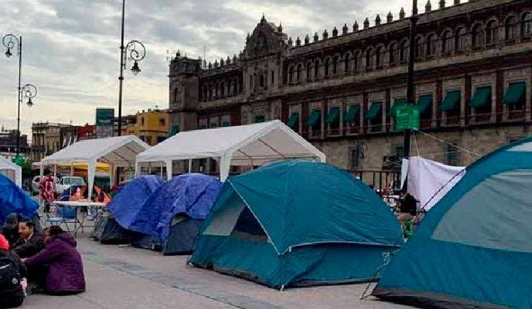 Los manifestantes colocaron sus casas de campaña en la explanada, frente a la Catedral Metropolitana y el Palacio Nacional, a la espera de ser atendidos por autoridades del gobierno federal.