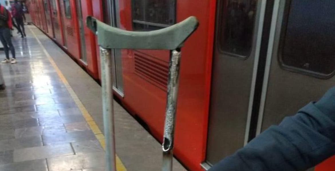 De acuerdo con el reporte, la muleta se atoró en el tren que se encontraba arribando al andén, lo que obligó a cortar la energía en la Línea y se detuvo la circulación de los convoyes.