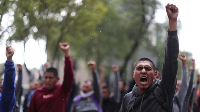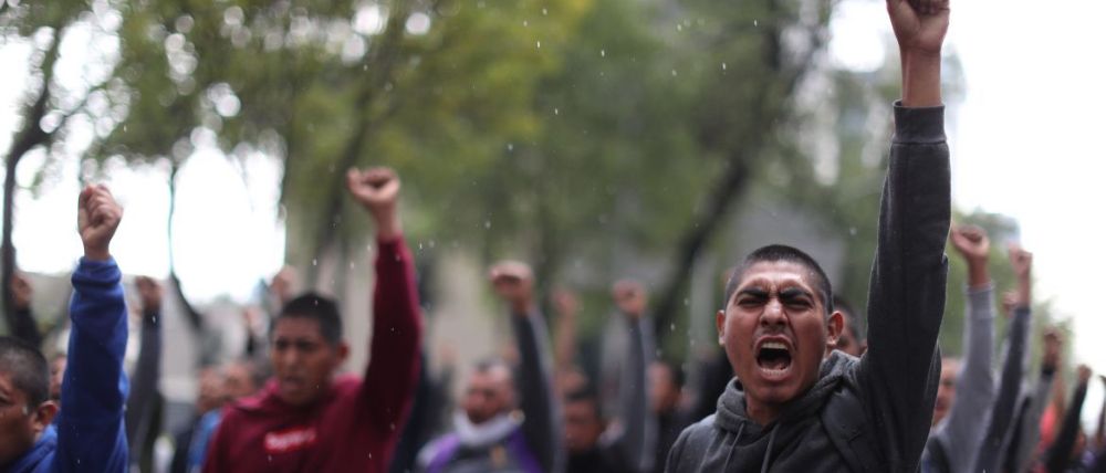 "Seguiremos con la exigencia de presentación con vida de los 43. No podemos claudicar en la lucha hasta no tener prueba plena que indique su paradero. Sería doloroso para nuestras familias saber de su destino sobre todo si es sin vida, pero si nos dan prueba objetiva, científica e indubitables, nos iremos a casa llorando y vivir nuestro duelo", leyeron en un pronunciamiento durante la marcha que hacen el 26 de cada mes en la Ciudad de México.