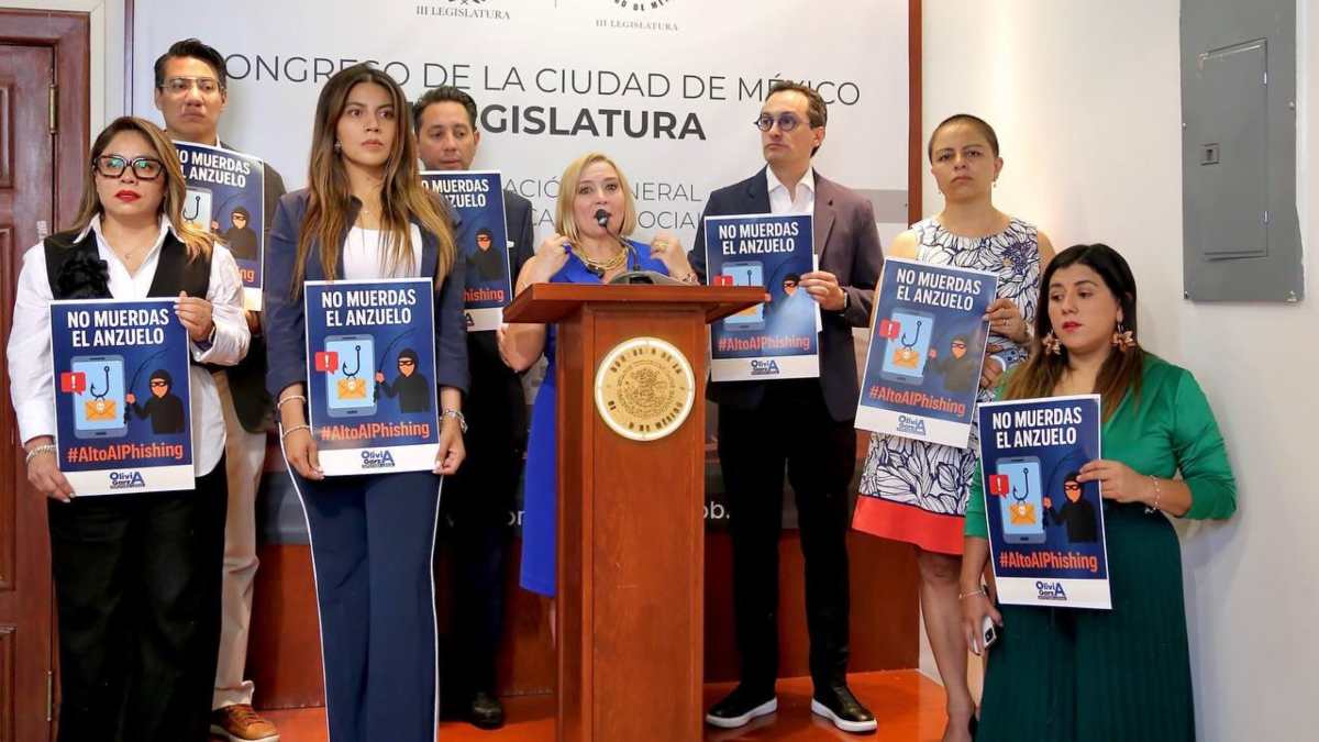 Durante una conferencia, la diputada Olivia Garza explicó que el “phishing” no está actualmente tipificado en el Código Penal de la Ciudad de México, lo que complica su investigación y persecución.
