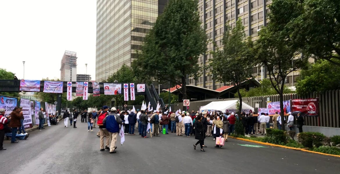 CIUDAD DE MÉXICO.- La mañana de este jueves, integrantes del Sindicato Petroleros de México (Petromex) bloquean uno de los carriles de avenida Marina Nacional, a la altura de la Torre de Pemex.
