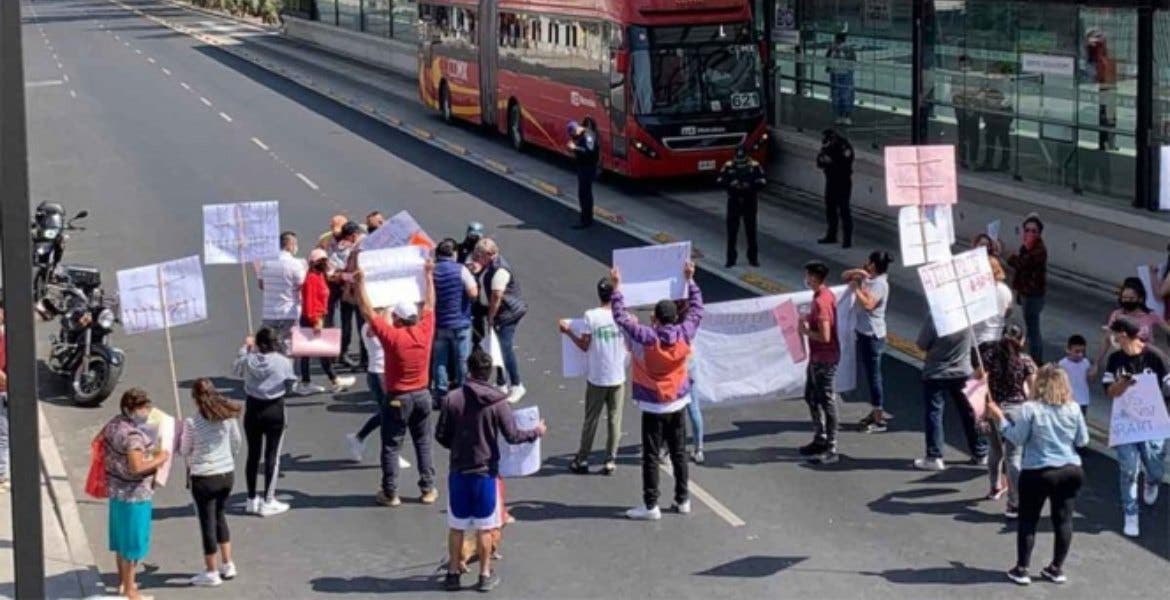 Ciudad de México.- Familiares de “Araht” realizaron un bloqueo sobre Eje 3 Oriente Cafetales a la altura de la estación del Metrobús ESIME Culhuacán de la Línea 5, en la colonia San Francisco Culhuacán CTM, alcaldía Coyoacá.