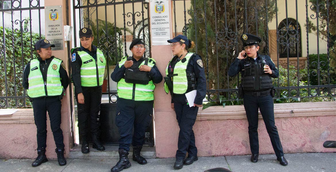 Policías capitalinos resguardan embajada de Ecuador por manifestantes