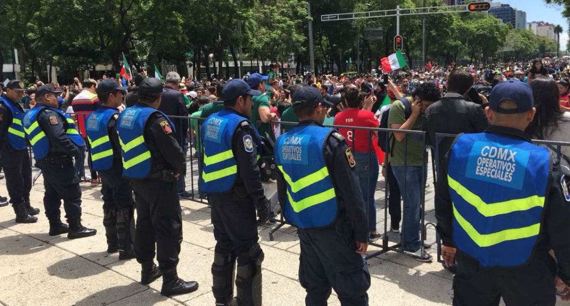 México.- El Centro de Información Vial de la Secretaría de Seguridad Pública de la Ciudad de México desplegó un dispositivo de seguridad en la glorieta del Ángel de la Independencia luego de la victoria de México contra Alemania.