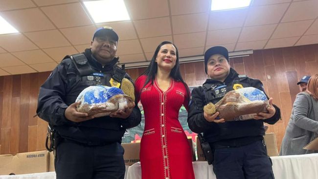 Ciudad de México.- Como una forma de reconocer la labor de los elementos de la policía de la alcaldía Cuauhtémoc, Sandra Cuevas Nieves, encargada de esta demarcación, les entregó un pavo a cada uno de los oficiales de la Dirección de Seguridad Ciudadana y Protección Civil.