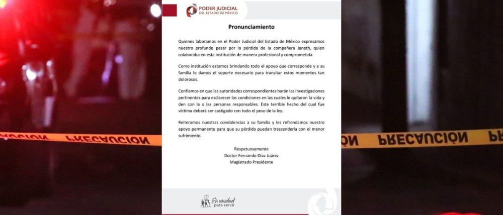 Janeth Marisol trabajaba en el Juzgado Octavo Familiar del Distrito Judicial de Toluca. Su muerte ha generado consternación entre el personal del Poder Judicial, desde donde se emitió un pronunciamiento público para expresar condolencias y exigir justicia.