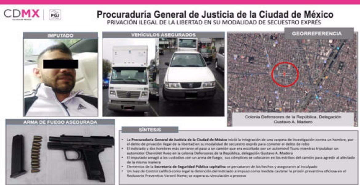 El implicado fue presentado ante el Ministerio Público y posteriormente se le imputó formalmente el cargo por secuestro exprés para cometer robo.