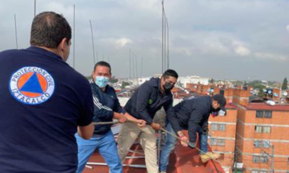 Protección Civil retiró tinaco colgante en Iztacalco