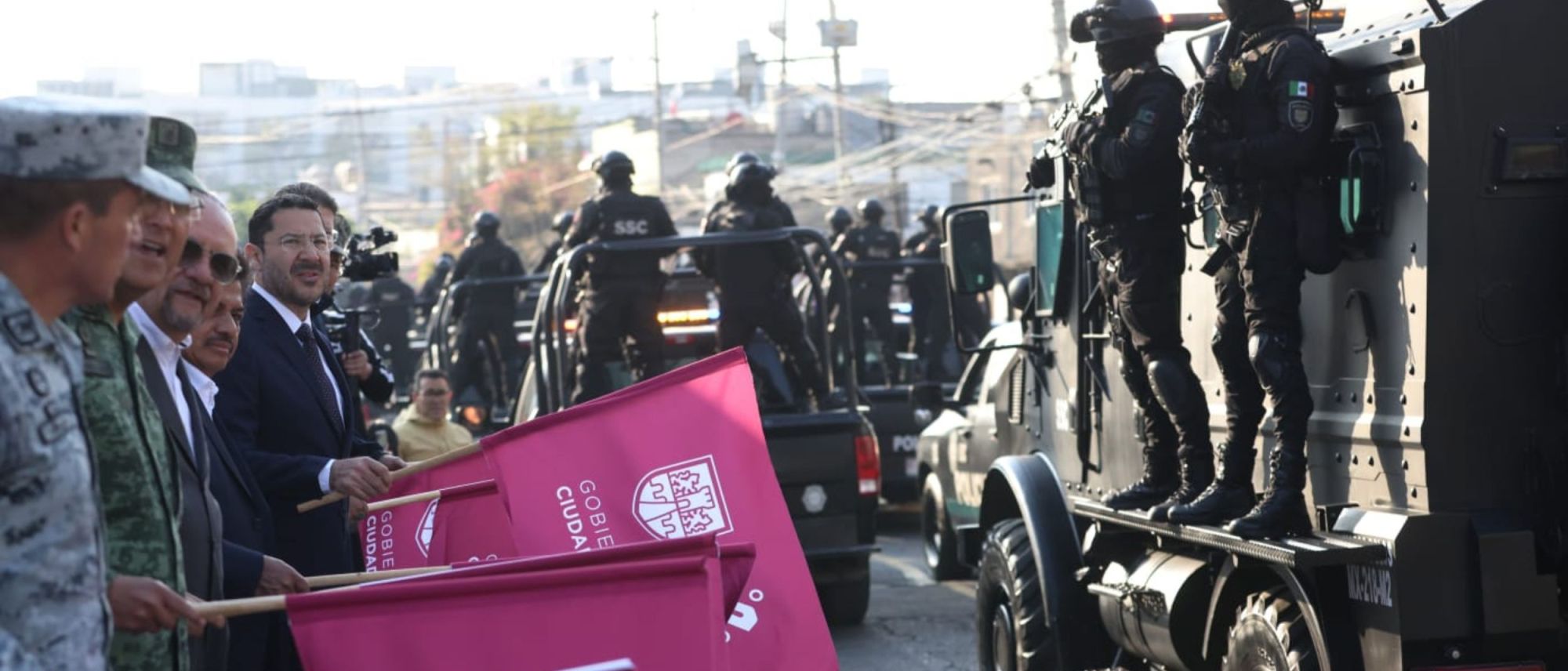 Ciudad de México.- Martí Batres Guadarrama, jefe de Gobierno, dio el banderazo de salida en la alcaldía Gustavo A. Madero, a 2 mil 538 elementos de seguridad pública de corporaciones locales y federales, quienes, acompañados de 112 vehículos, entre ellos un helicóptero Cóndor, llevarán a cabo operativos de reforzamientos en la colonia Gabriel Hernández y sus alrededores.
