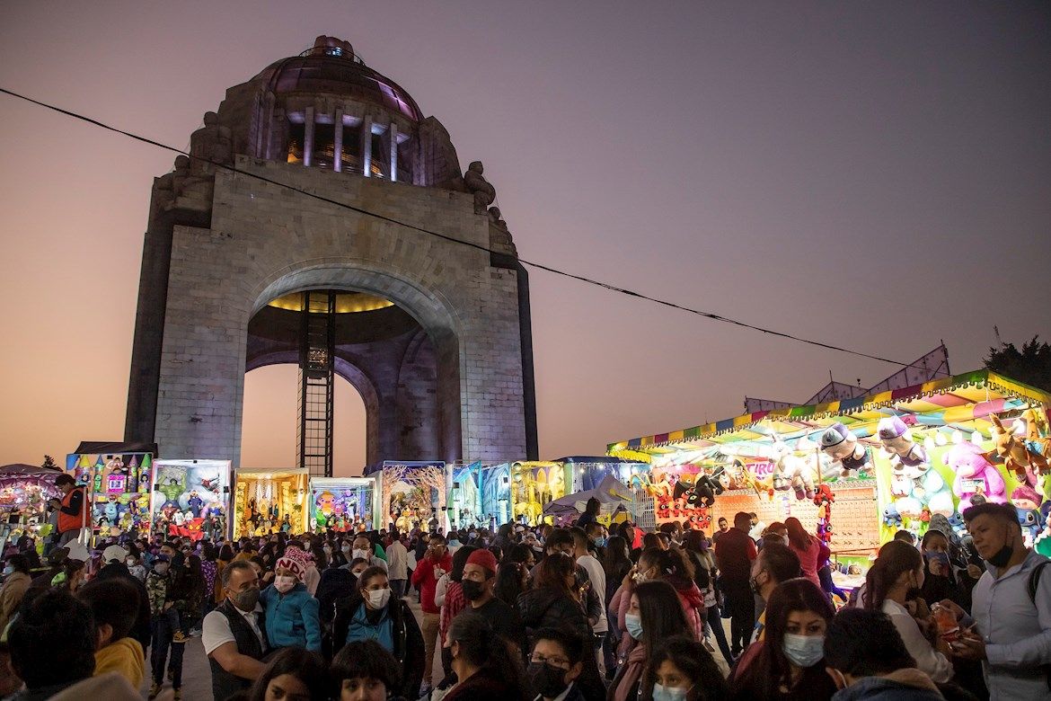 Ciudad de México.- Decenas de personas acuden al Monumento a la Revolución para tomarse una fotografía con actores que representan a los Reyes Magos, hoy, en la explanada del Monumento a la Revolución de Ciudad de México.