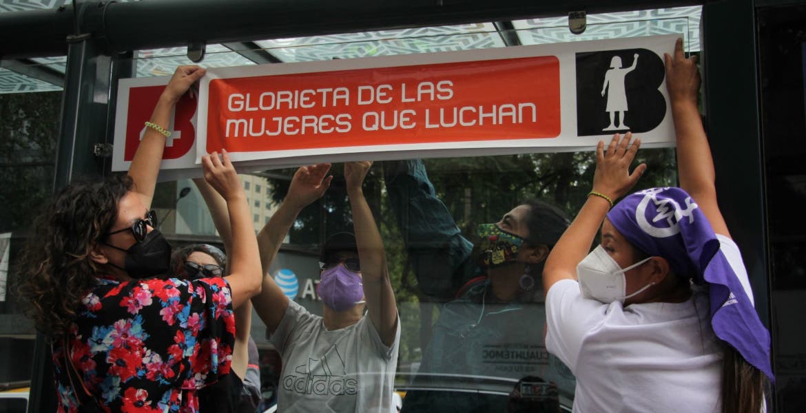A través del grupo Antimonumenta Vivas Nos Queremos, recordaron que el 25 de septiembre de 2021, colectivos feministas, rastreadoras y madres buscadoras de hijos y familiares desaparecidos, colocaron en la glorieta donde se encontraba la estatua de Cristóbal Colón, en la avenida Paseo de la Reforma, para recordar a las mujeres que fallecieron en actos violentos o durante su lucha como activistas.