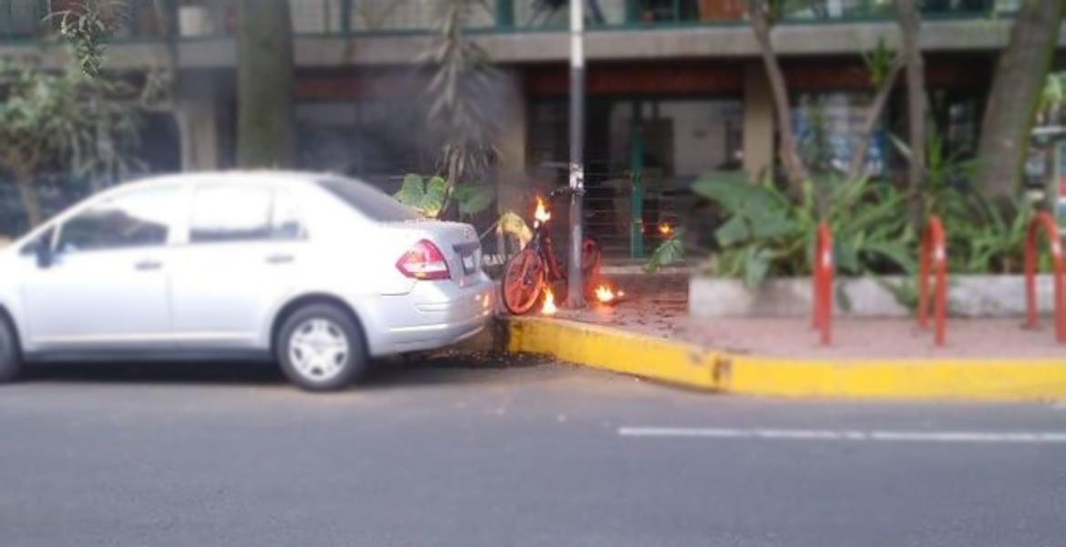 Ciudad de México.- Un vecinos de la colonia Escandón, alcaldía Miguel Hidalgo, señaló en Twitter el presunto incendio de una bateria de una bicicleta electrica de renta de la empresa DezbaMX, en la foto se puede ser como el vehículo esta en llamas en la banqueta, por lo que indicó el tuitero la importancia de cuidar los estandares de calidad de estos productos.