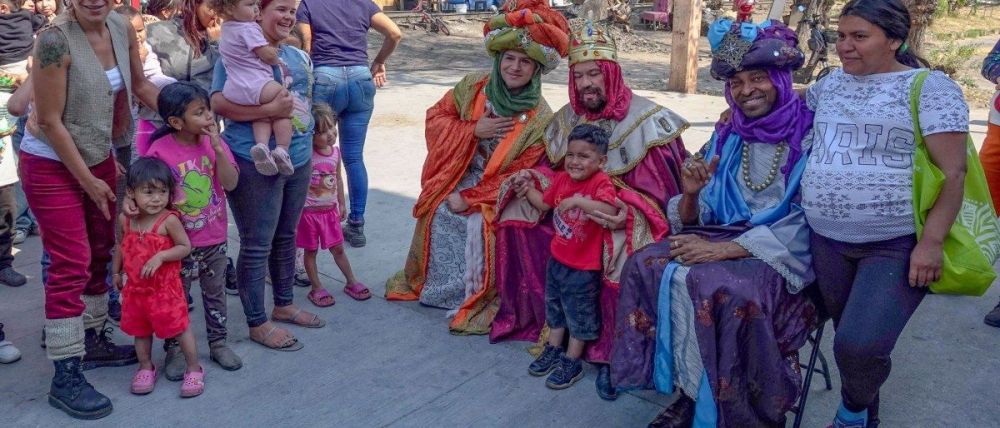 Integrantes de la organización Interculturalidad, Salud y Derechos A.C. (INSADE), acompañados de personas caracterizadas como los Reyes Magos, repartieron juguetes a niñas y niños migrantes que viven en el campamento instalado sobre las vías férreas de la colonia Vallejo, en la alcaldía Gustavo A. Madero.
