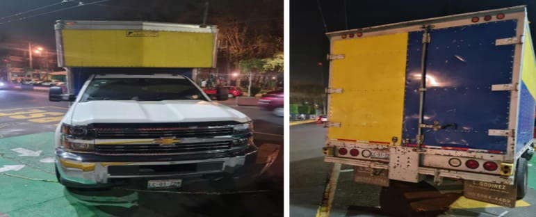 La víctima inmediatamente solicitó el apoyo de policías y al señalar las características de la camioneta robada, marca Chevrolet Silverado de color blanco con amarillo, con placas de circulación LC01724 del Estado de México, se inició la búsqueda.