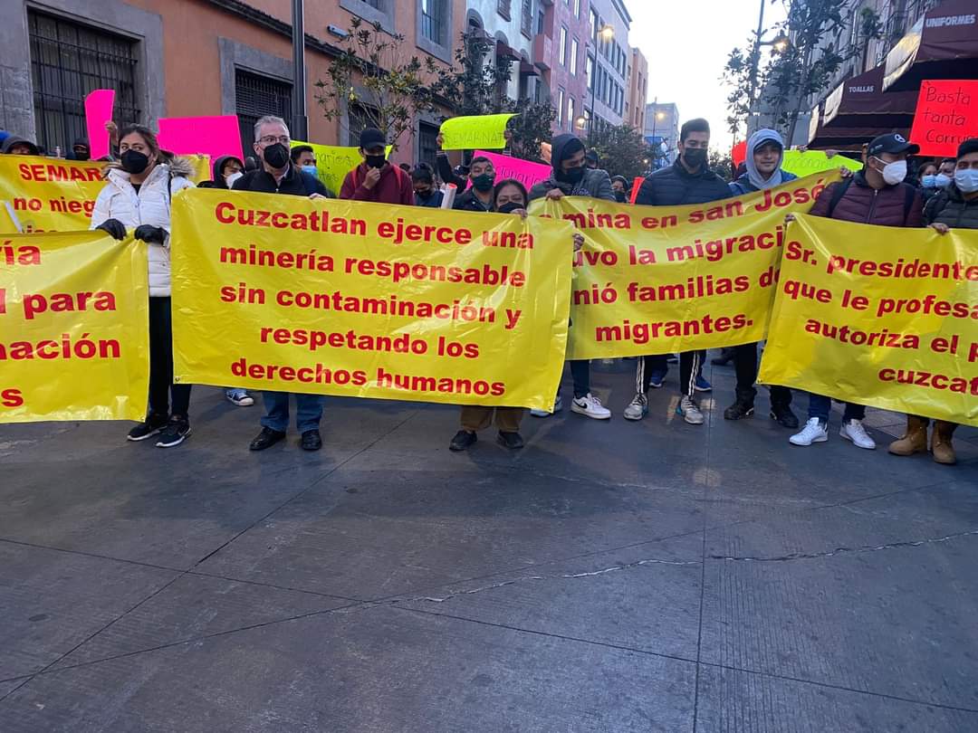 Simpatizantes de minera contaminante en Oaxaca protestan en Palacio Nacional
