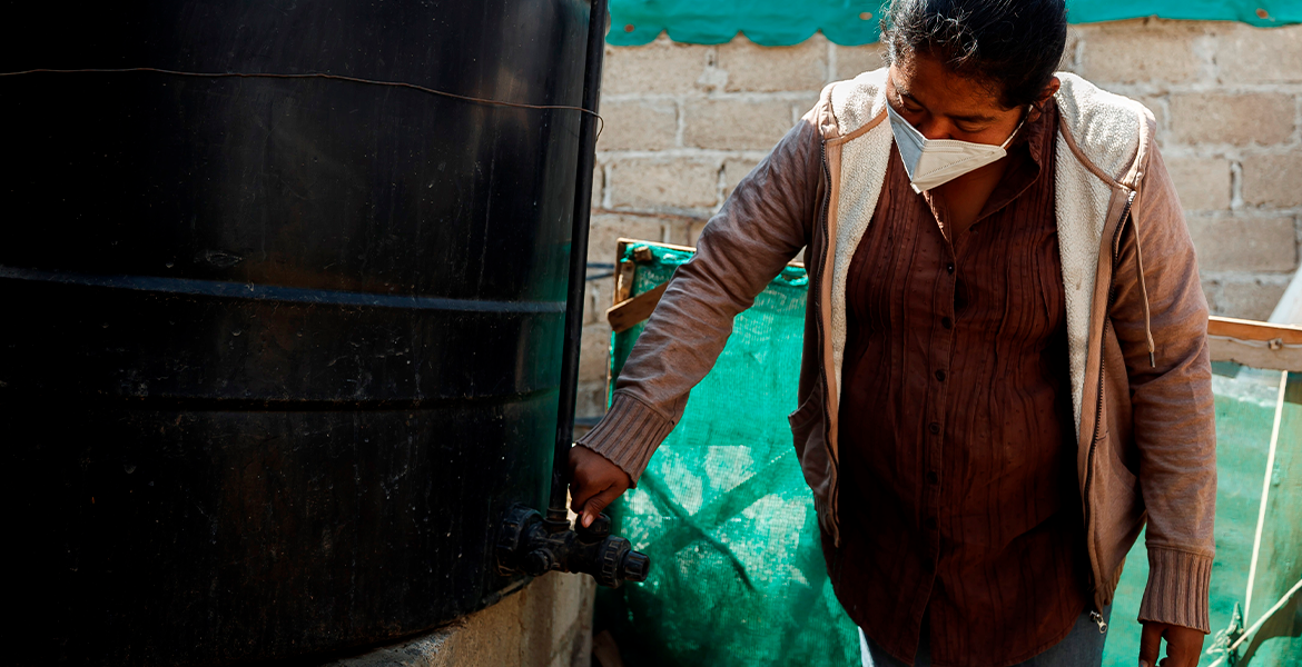 Esta ama de casa vive con su familia en el sur de Ciudad de México, al pie de las montañas que cercan la capital mexicana, en una comunidad donde las casas, según relata, no tienen tuberías por donde fluya el agua corriente "ni una bomba cerca donde ir a traer agua".