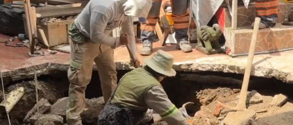 Esta mañana recibimos el reporte de un socavón en la colonia América, desde ese momento el equipo de @MHPrevencion se presentó en el lugar, detectando que este hundimiento se provocó por la ruptura de una tubería de agua.
