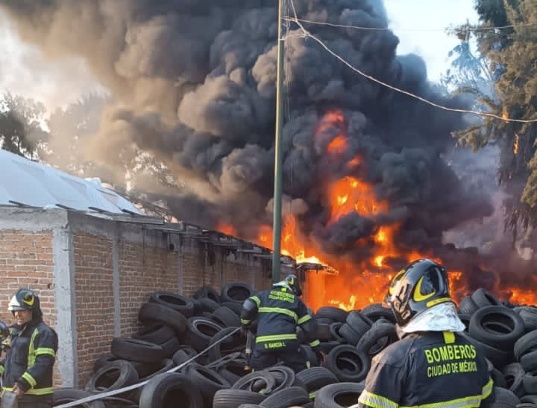 Ciudad de México.- Bomberos de la Ciudad de México sofocaron un incendio surgido en un tiradero de llantas localizado en el “Vivero Axolotl”, colonia Zona Rústica Xochimilco, alcaldía Xochimilco.