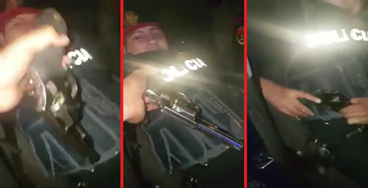 A través de redes sociales se ha viralizado un video que muestra el momento exacto en que un par de policías dormían al interior de un patrulla, mientras que una persona externa despoja de su arma de mando a unos de los oficiales pertenencientes a la Policía Bancaria e Industrial.