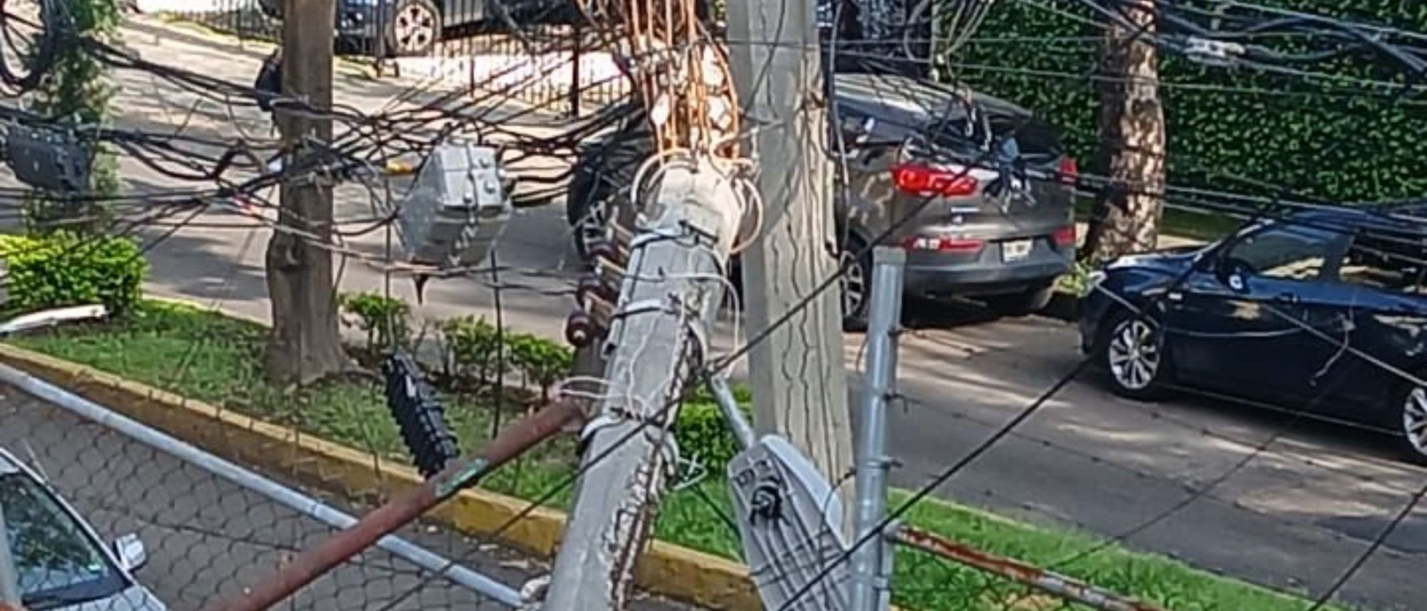 Asimismo, a través de redes, usuarios reportan daños en un poste de electricidad ubicado en la calle Tezoquipa, colonia La Joya. En X, un internauta compartió una foto que ilustra los daños, donde se visualiza aproximadamente un cuarto de poste caído sobre el techo de una vivienda y cables colgando sobre este.