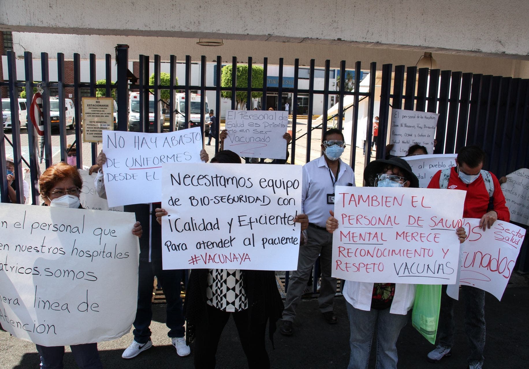 Los manifestantes dijeron que por no ser considerados como un hospital de primera línea, no se les ha aplicado la vacuna para el coronavirus.