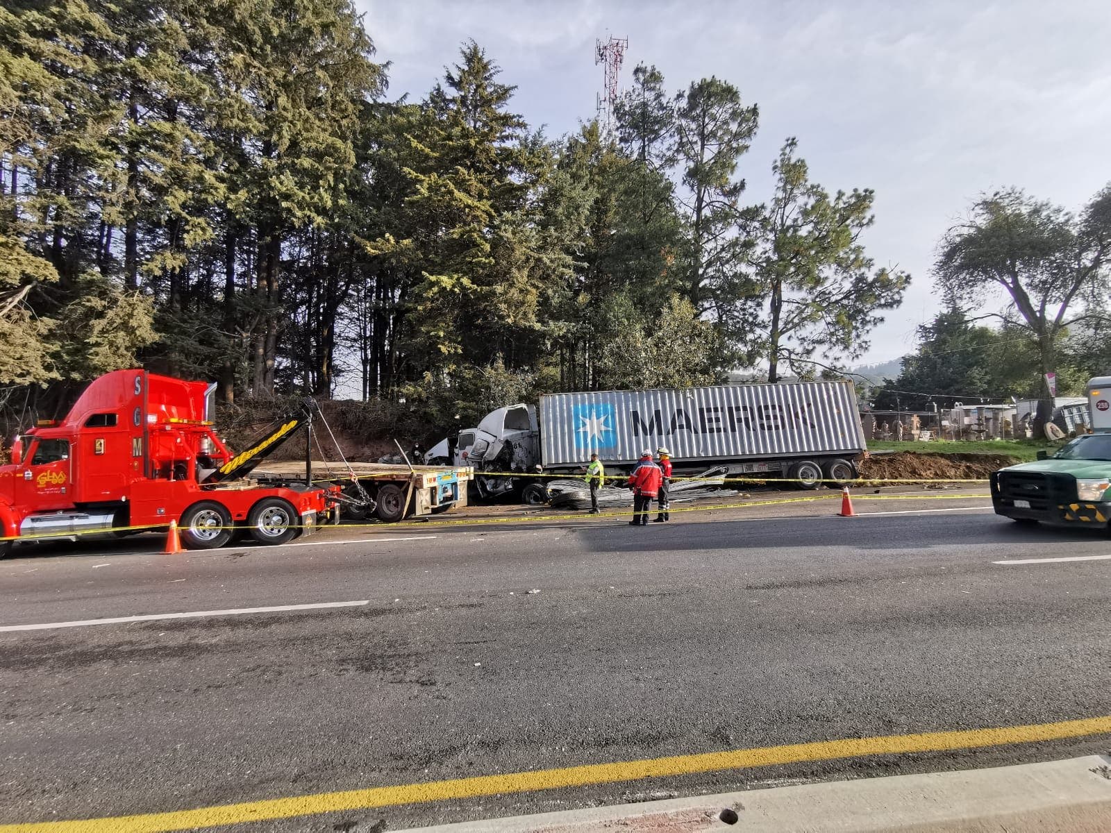 Ciudad de México.- Luego del choque entre dos tráileres, la carretera México-Toluca tuvo que ser cerrada, al parecer una persona murió por el accidente.