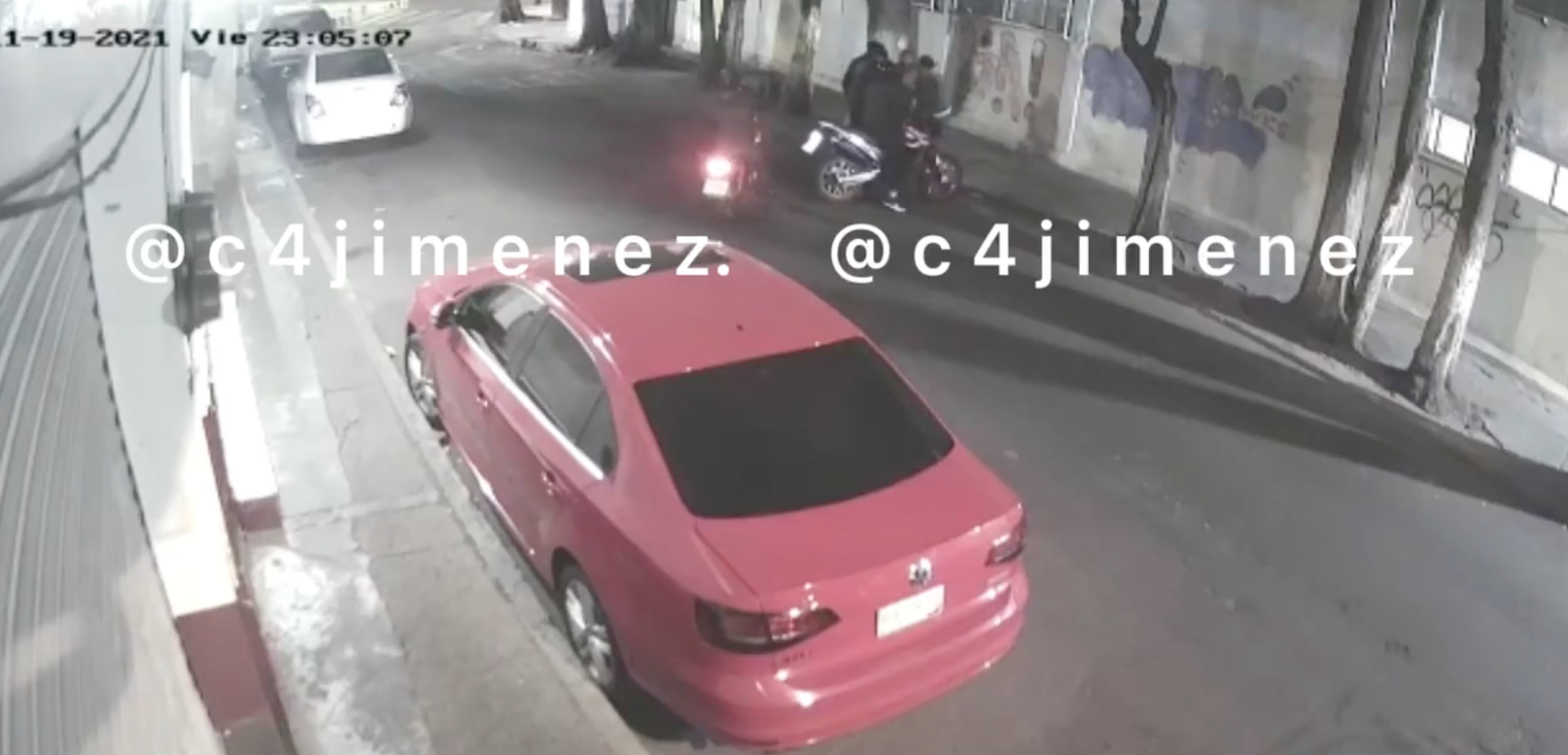 En las imágenes se puede apreciar a dos personas caminar; mientras que cerca de ellos había un grupo de personas congregadas y dos de ellas a bordo de unas motocicletas. Durante esos momentos, parecía que aquellos sujetos estaban a la espera de los transeúntes, quienes después fueron víctimas de la violencia y fueron asaltados.